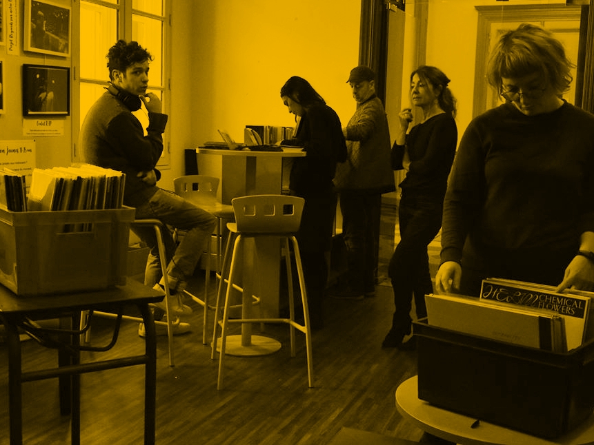 Un lieu de convivialité pour boire un verre et/ou grignoter entre 2 concerts et découvrir les artistes invité·e·s à travers une sélection de CDs, vinyles et revues sur la création musicale.