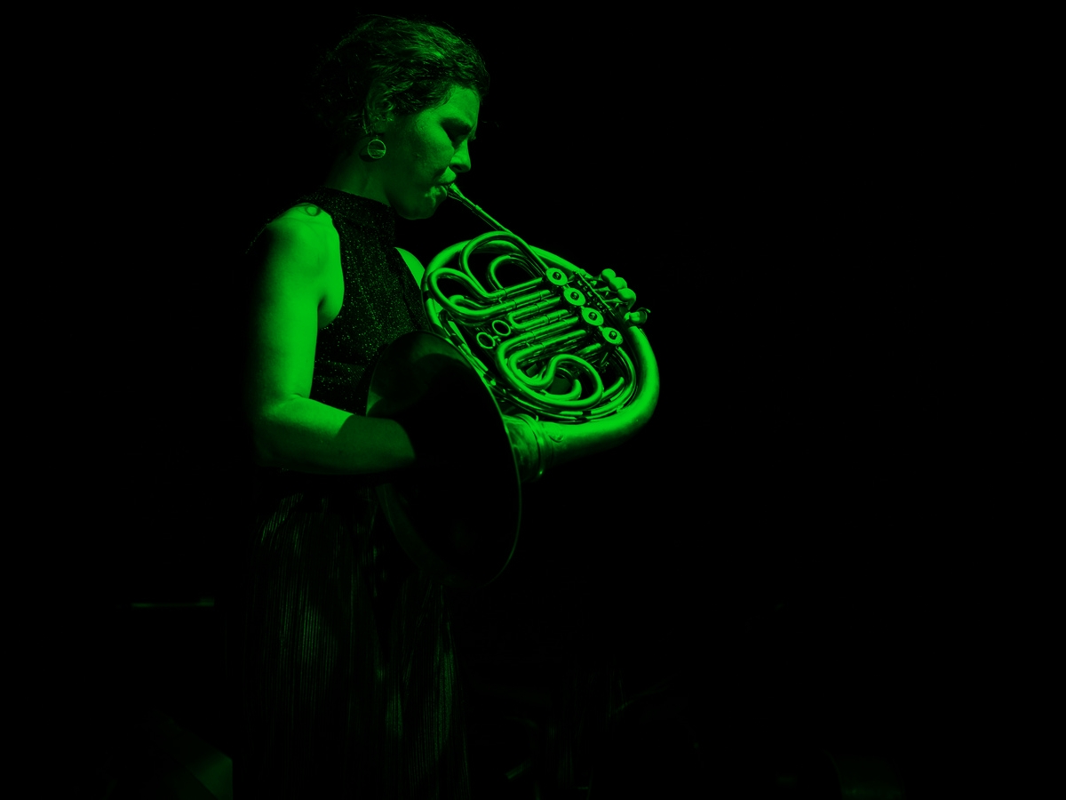 Elle donne des concerts solo acoustiques et amplifiés, avec ou sans chant, selon le lieu, et propose une nouvelle approche du cor : mélodique, microtonal, silencieux, chantant, et toujours libre de se transformer « ici et maintenant ».