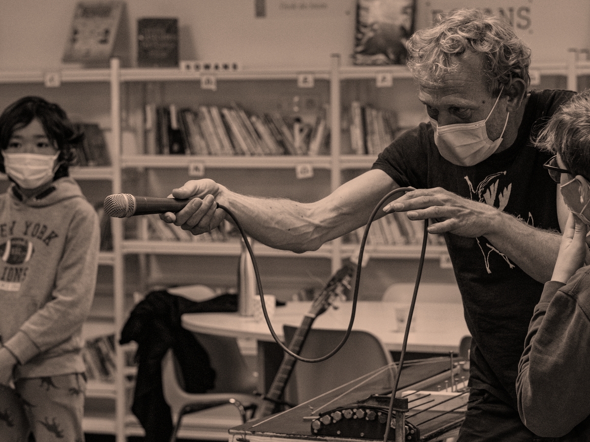 Deux ateliers menés par Amélie Agut et François Cys (Cyclophones) seront dédiés à la découverte de l’univers artistique et des machines musicales développées par les Cyclophones et à l’enregistrement de séquences-jeux musicales qui feront partie d’une série de miniatures sonores composées de mots, de bruitages et de musiques, à partir de textes choisis par les enseignantes.