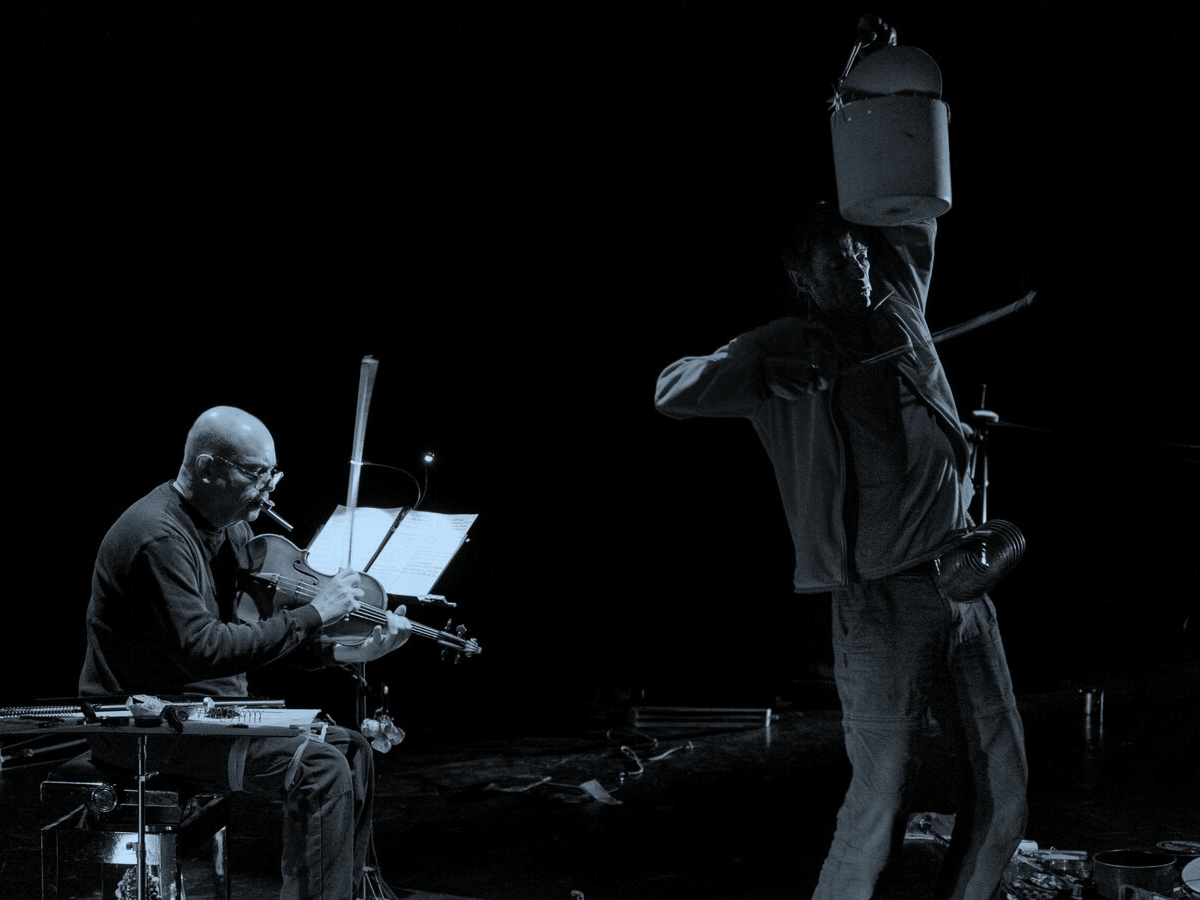 Ces deux-là se connaissent depuis un moment. L’un vient plutôt des arts plastiques et de la performance, l’autre des musiques traditionnelles. Tous deux travaillent sur des objets mis au rebut, sur la poétique du territoire, aiment improviser, chercher, trouver parfois. Une joyeuse et foisonnante polyphonie bruitiste et inspirée, un road-trip sonore où la montagne voisine la plage et où les vaches font du paquebot !